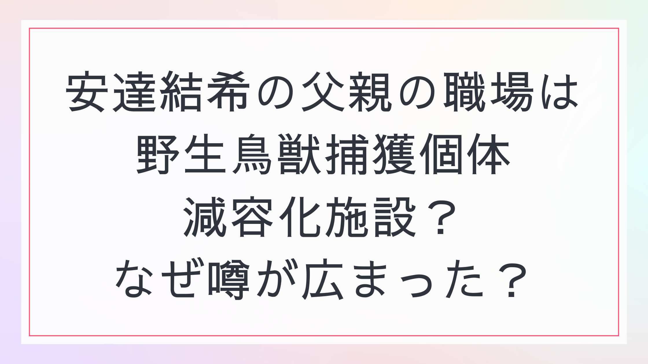 安達結希さんの父親の元職場は野生鳥獣捕獲個体減容化施設?