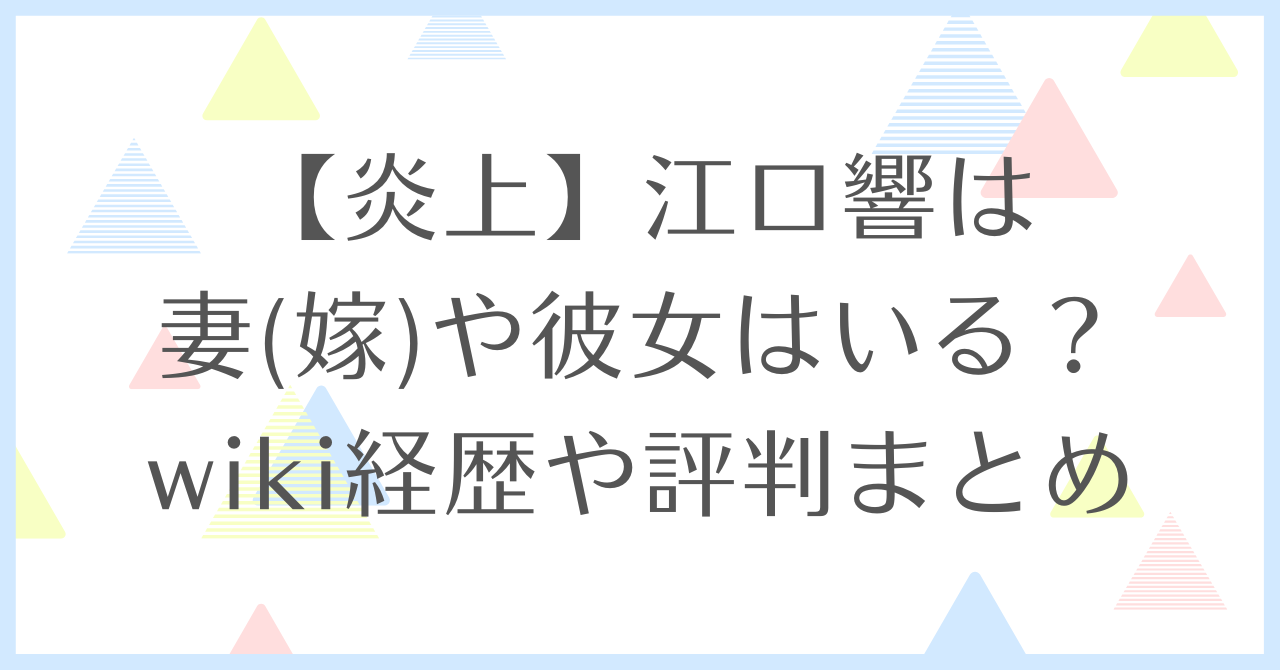 【炎上】江口響は妻(嫁)や彼女はいる?wiki経歴や評判まとめ