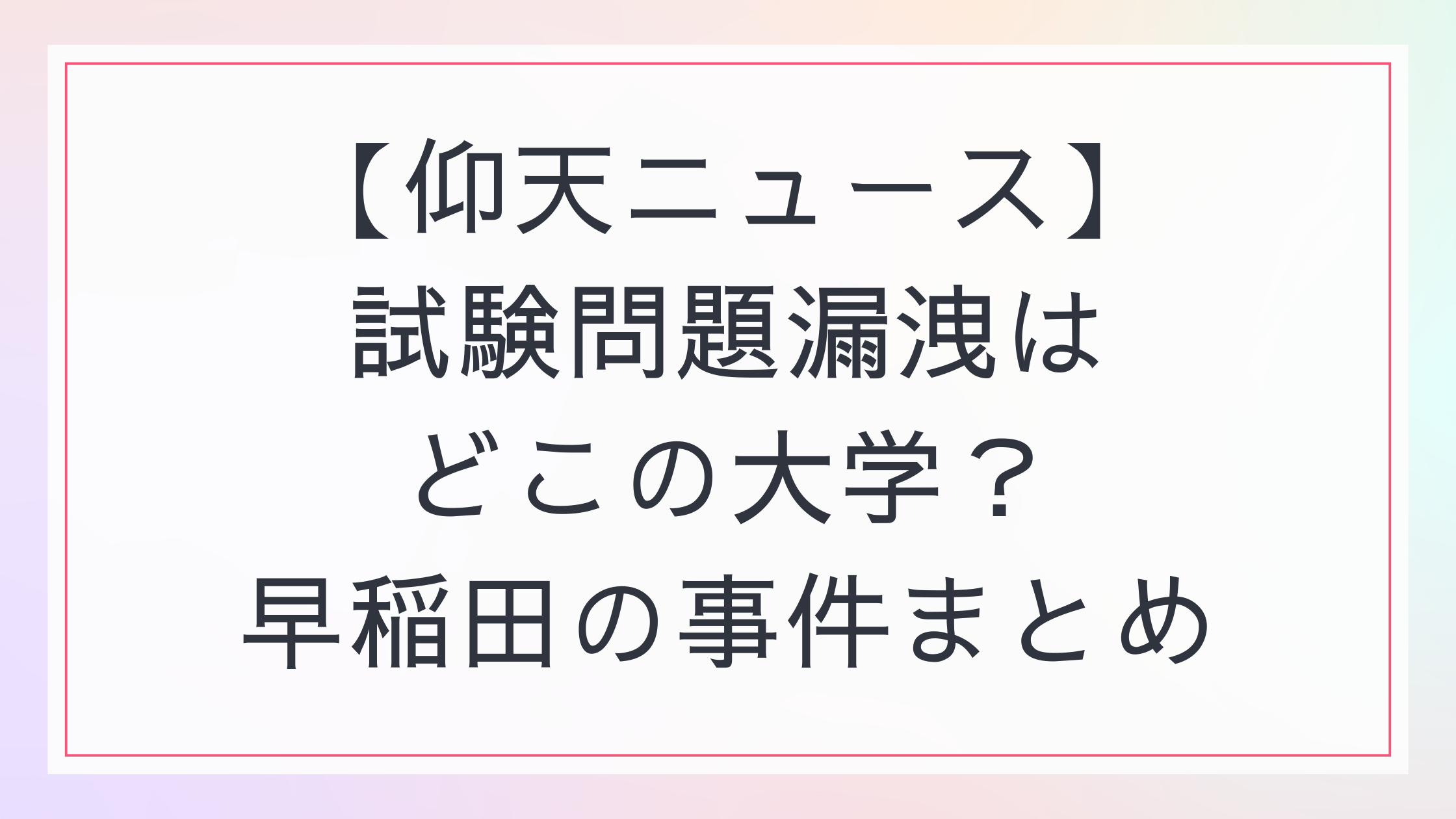 仰天ニュースで取り上げられる「名門私立大学の試験問題漏洩」の予想として、早稲田大学での事件についてまとめました。