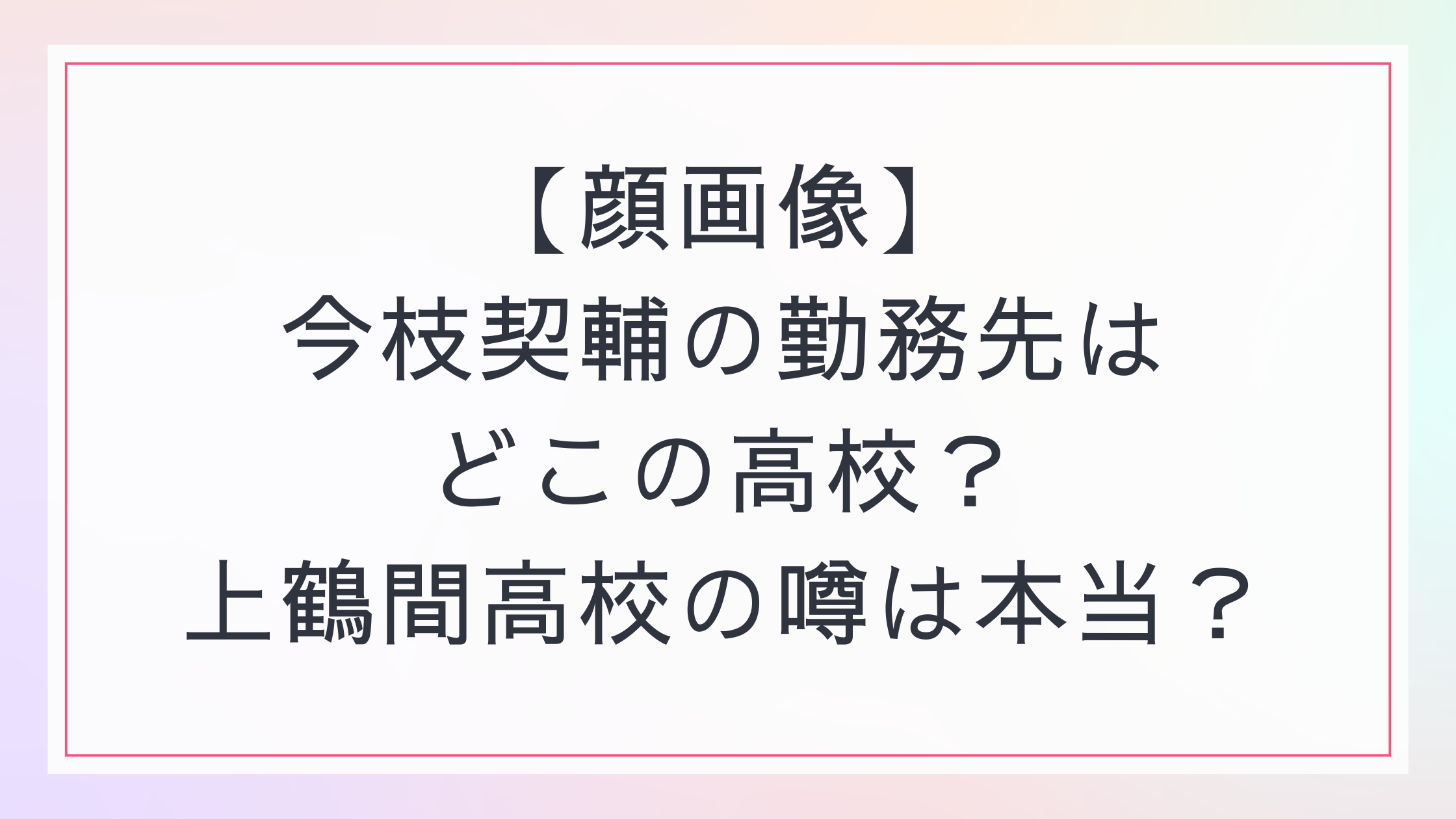 今枝契輔の勤務先・上鶴間高校の噂は本当?