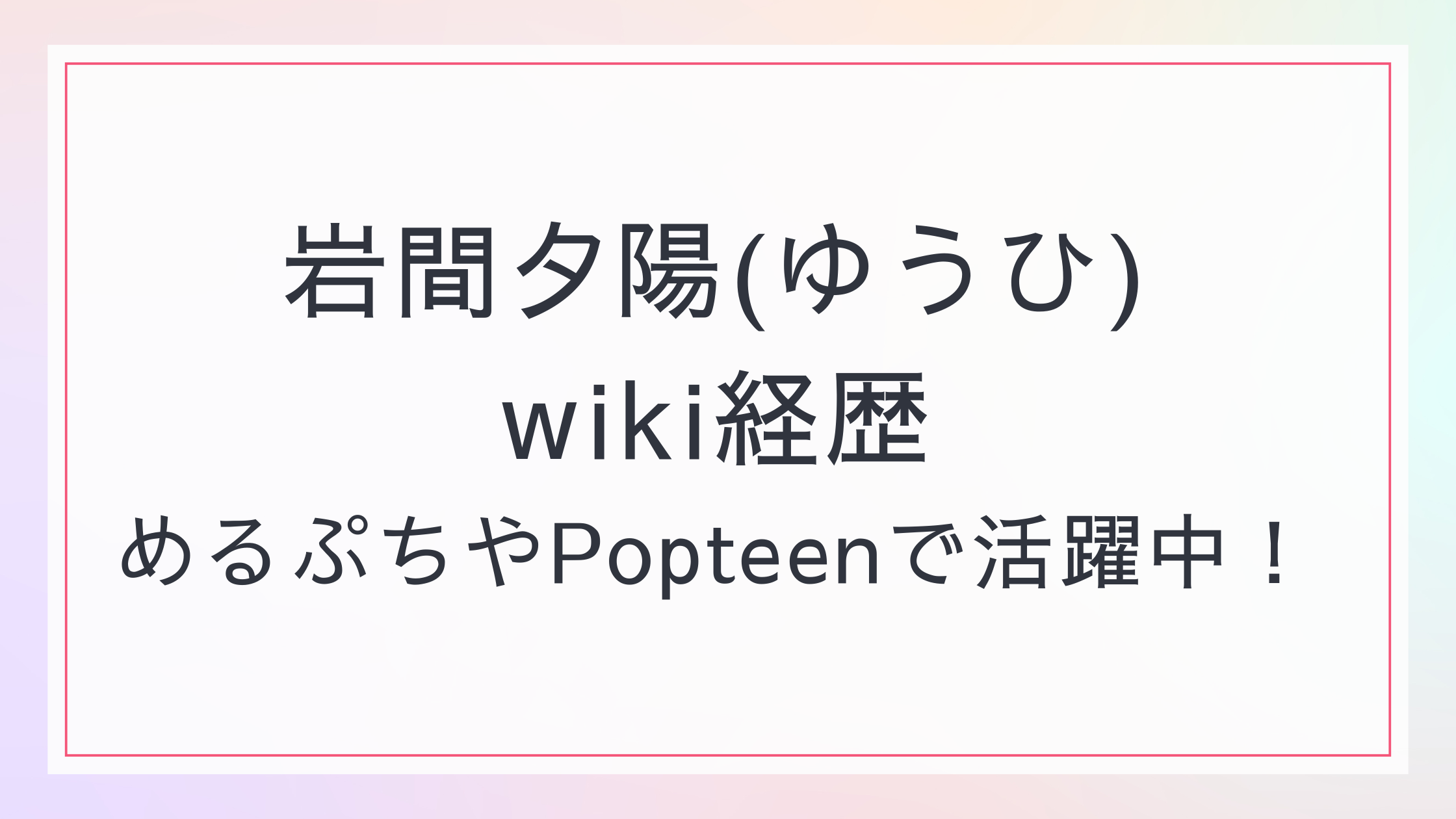 今回は岩間夕陽さんのプロフィールや経歴についてまとめました。