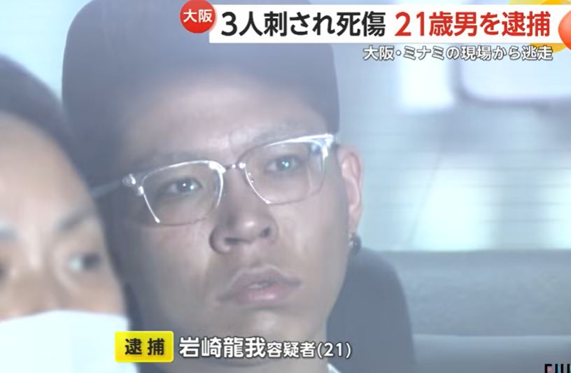 岩崎龍我容疑者は、大阪・道頓堀で起きた刺傷事件で逮捕された無職の男性です。