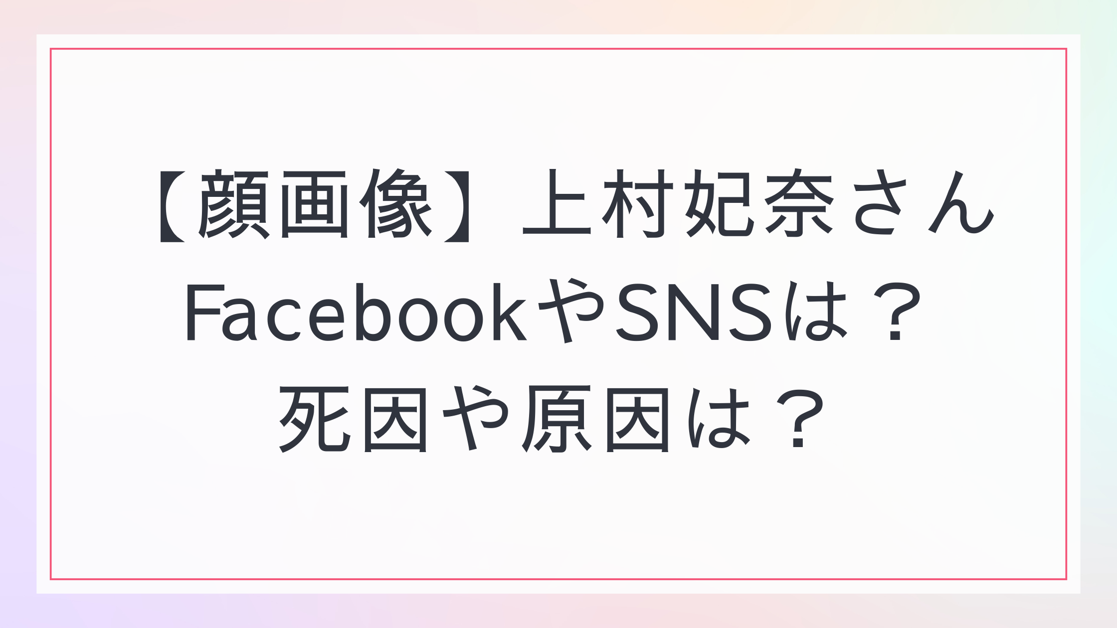 【顔画像】上村妃奈さんFacebookやSNSは?死因や原因は?