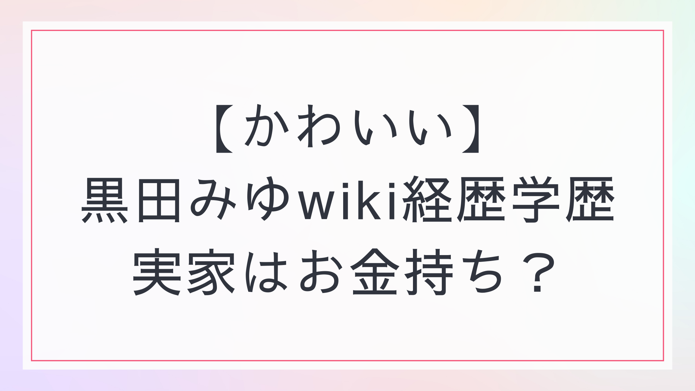 この記事では、黒田みゆさんのプロフィールや経歴、実家がお金持ちといわれる理由について調査しました。