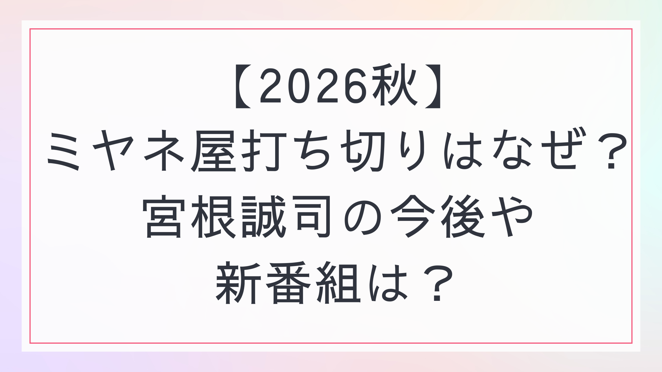 2026年秋頃に番組終了という衝撃のニュースが報じられました。
