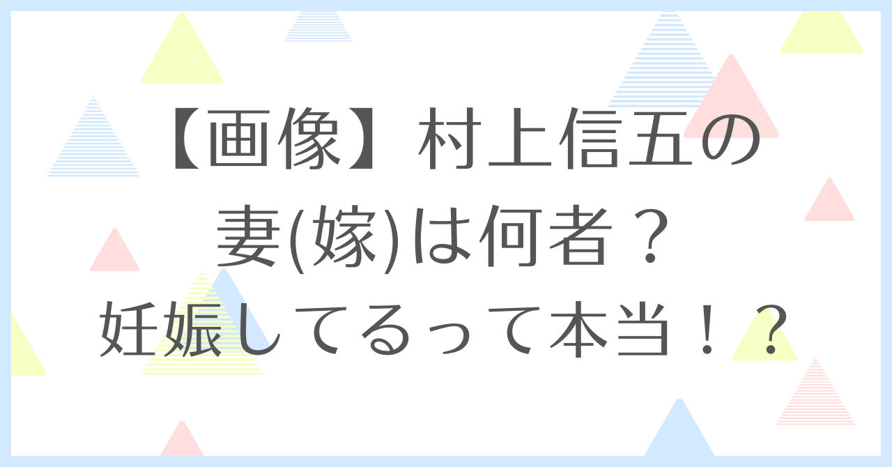 【顔画像】村上信五の妻(嫁)は何者?妊娠してるって本当!?