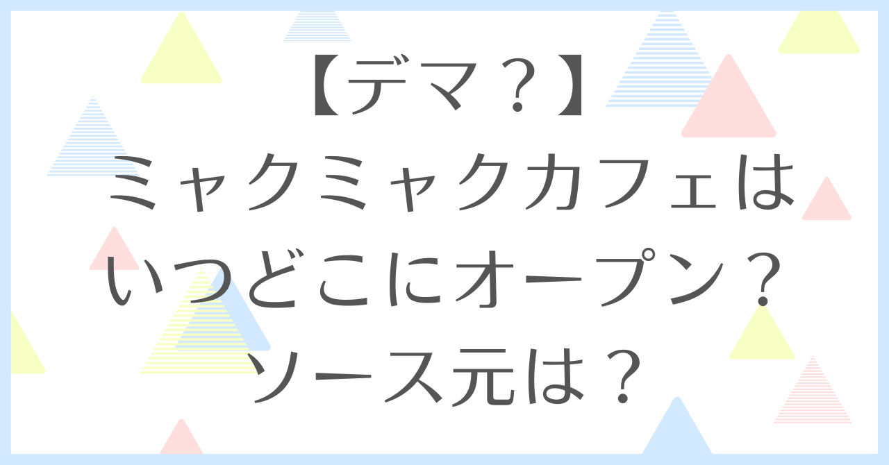 ミャクミャクカフェの詳細や、真相が不明の理由、ソース元や世間の反応などまとめました。