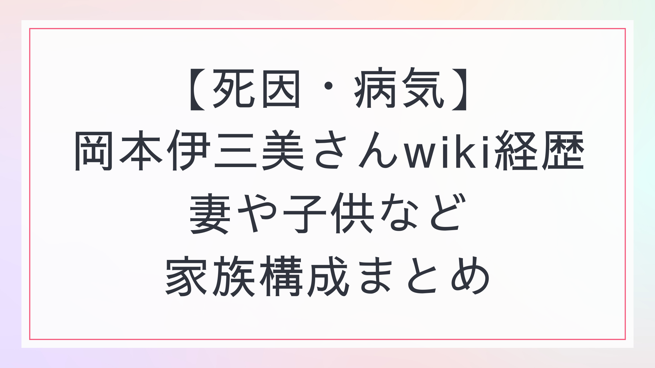 【まとめ】岡本伊三美さんの功績と家族