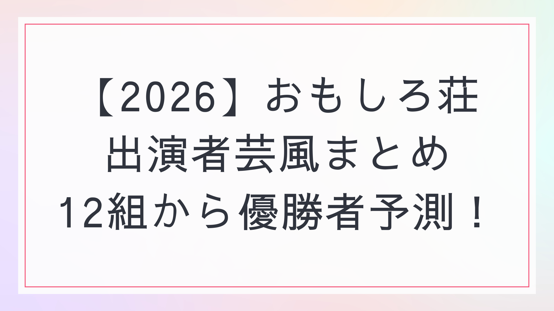 【2026】おもしろ荘・12組から優勝者予測!