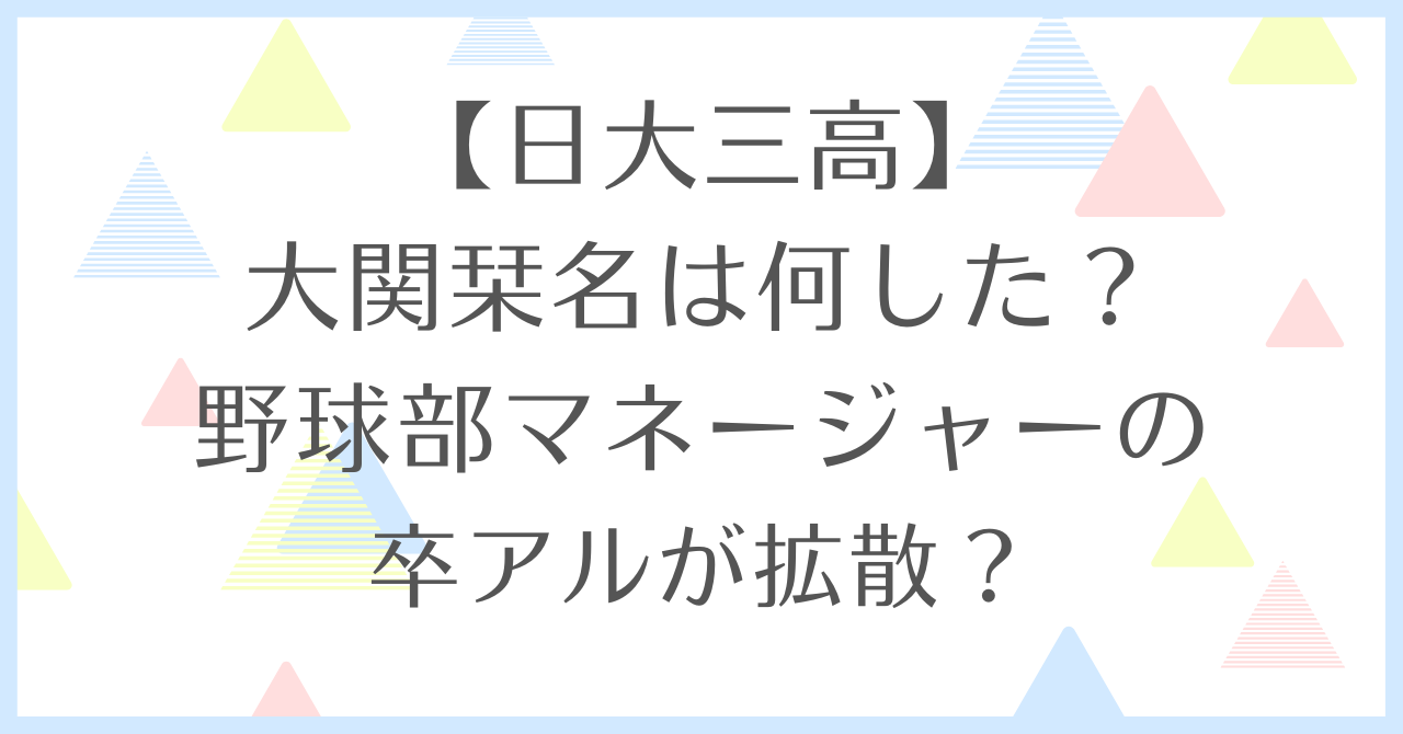 日大三高野球部のわいせつ動画問題が大きく報じられる中で、「大関栞名」という名前がSNS上で拡散され話題になっています。
