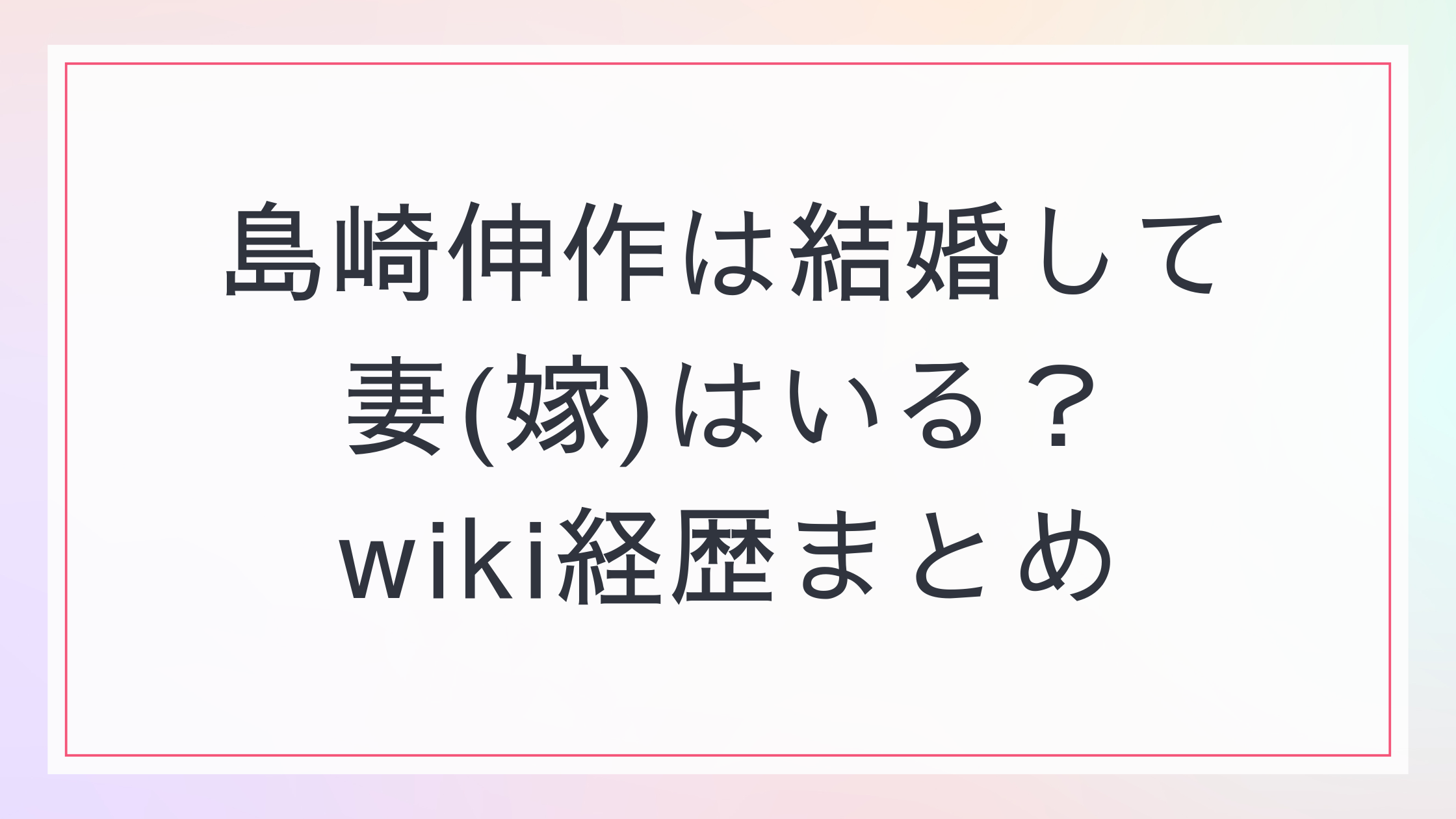 【何者】島崎伸作は結婚して妻(嫁)はいる?wiki経歴まとめ