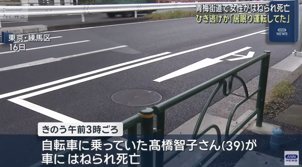 練馬区の青梅街道を自転車で走行中に、車にはねられたことで亡くなったようです。