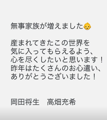 2026年1月28日、ついに第1子が無事に誕生したことが、それぞれのInstagramのストーリーズで発表されました。